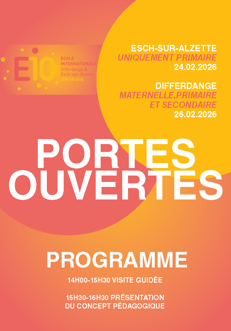 L'École internationale Differdange et Esch-sur-Alzette (EIDE) s'adresse aux enfants et aux jeunes issus de l'immigration, ainsi qu'à tout autre élève souhaitant s'épanouir dans un contexte international. Elle vise en priorité les jeunes de Differdange et d'Esch-sur-Alzette, ainsi que ceux du sud du pays. Outre les efforts d'intégration des élèves étrangers qui resteront dans le pays, l'offre de l'école internationale est adaptée aux besoins des jeunes résidant temporairement au Grand-Duché et appelés à poursuivre leurs études dans un autre pays. L'EIDE est ouverte à tous les élèves, sans frais d'inscription.